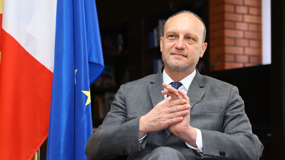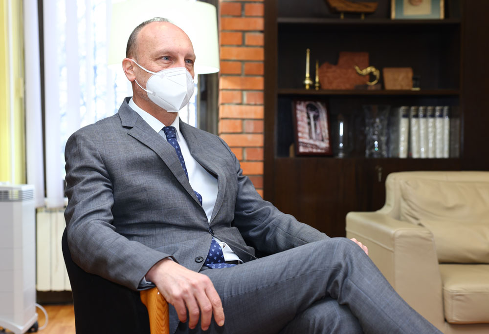 С. Бомгартнер: Задоволство ми е и мене да ја продолжам традиционалната соработка што ја има вашиот магазин со Амбасадата на Франција и да одговорам на вашето интервју во кое, покрај амбасадорите, е вклучен и регионалниот директор на Француската агенција за развој (ФАР), кој се подготвува за почеток на активностите во Северна Македонија. Што се однесува до здравствената состојба, како во Франција така и во сите други земји од европскиот континент, таа и понатаму е главна преокупација. Актуелната состојба, релативно земено, може приближно да се спореди низ повеќе аспекти со таа во Северна Македонија. Инциденцата е 308 заразени лица на 100 000 жители во текот на седум дена, а бројот на смртни случаи се искачи на над 92 000. Покрај тоа, притисокот врз болничкиот систем и болничкиот персонал е голем: зафатеноста на местата во одделите за реанимација од пациенти со ковид-19 е близу 90 %.