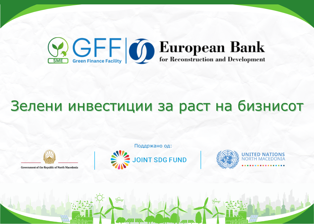 Повратот на инвестициите до 10% за зелени проекти е механизам кој ги охрабрува компаниите да инвестираат во обновливи извори и енергетска ефикасност. По успешната верификација на инвестициските проекти на ГФФ, МСП имаат право на враќање на готовина до 5% за инвестициите за енергетска ефикасност и до 10% за инвестиции за обновливи извори на енергија или за инвестиции кои се комбинација од обновливи извори на енергија и инвестиции за енергетска ефикасност. Оваа финансиска поддршка значително ја намалува финансиската тежина и го зголемува интересот за одржливи технологии. Проектот Green Finance Facility (GFF) е финансиран од Joint Fund for SDG (Заеднички фонд за целите на одржлив развој), United Nations in North Macedonia (Програмата за развој на Обединетите нации), EBRD (Европската банка за обнова и развој) и финансиските институции.