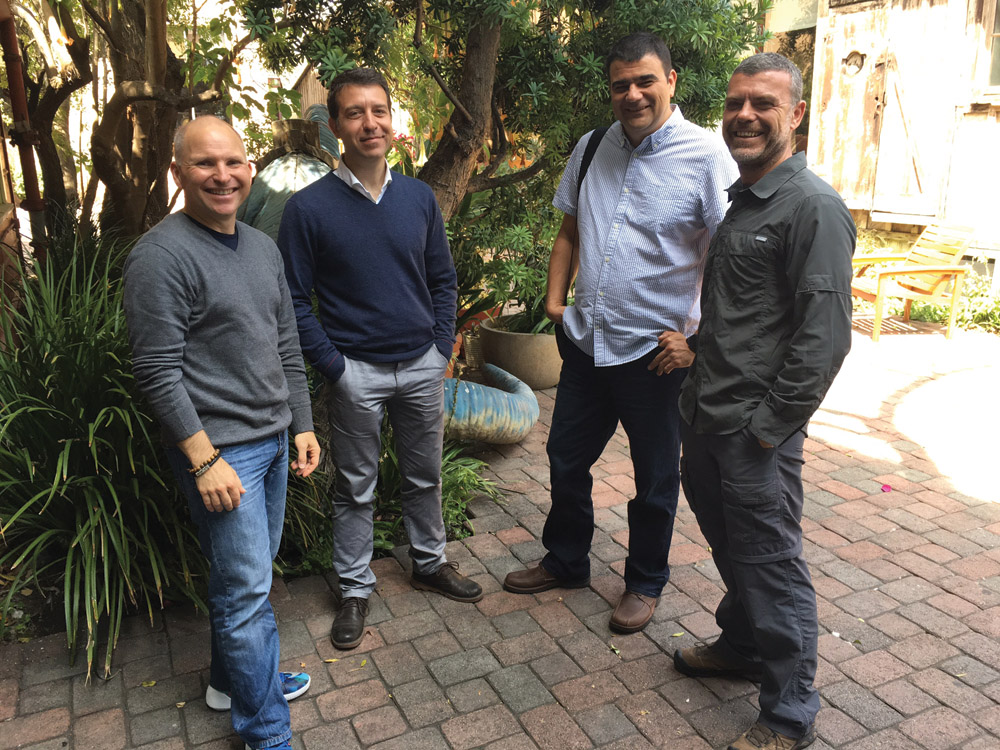 Пред канцеларија на ФХ3Х во Лос Анѓелес, од лево кон десно: Стефан Вајлд извршен продуцент во компанијата Хенсонс, Миливоје Ѓорѓевиќ и Кристијан Даниловски, основачи и сопственици на ФХ3Х и Александар Ѓорѓевиќ, супервизор на аудио одделот во ФХ3Х