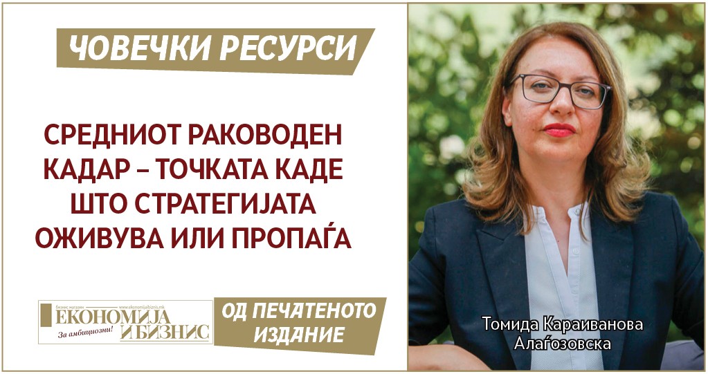 Сè повеќе македонски компании ставаат фокус на јасно дефинирана стратегија, со јасни поставени цели, планови за раст и пазарно позиционирање. Но, сè повеќе компаниите во практика се соочуваат со фактот дека успешната реализација на тие стратегии во најголема мера зависи од секојдневната работа на средниот раководен кадар, без оглед на тоа колку квалитетно е поставена стратегијата. Токму таму, меѓу стратешките одлуки и оперативната реалност, стратегијата или почнува да живее или тивко почнува да се распаѓа.