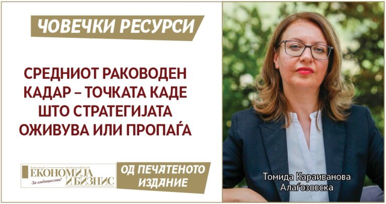 ЧОВЕЧКИ РЕСУРСИ | Томида Караиванова Алаѓозовска: СРЕДНИОТ РАКОВОДЕН КАДАР – ТОЧКАТА КАДЕ ШТО СТРАТЕГИЈАТА ОЖИВУВА ИЛИ ПРОПАЃА