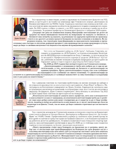 Тој е член на Управниот одбор на „НЛБ Група“, Љубљана, Словенија, од-