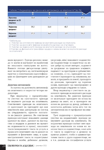 У Табела 2 Индикатори за даночната автономија на општините* (во %)