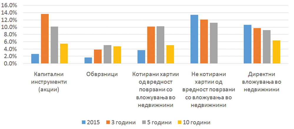 Компаративна анализа на повратот на различни класи на глобални инвестициони средства (во % годишно)