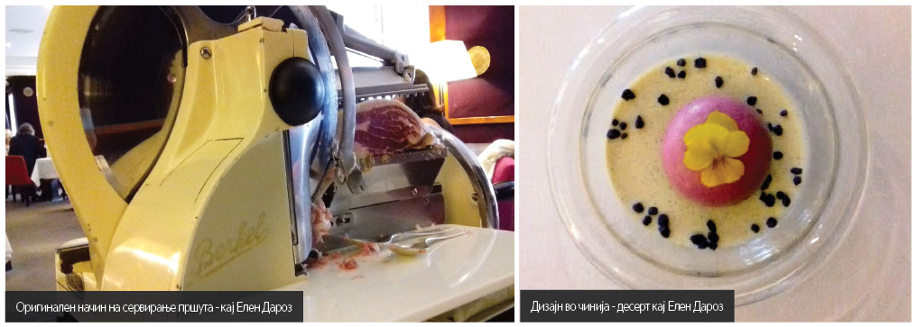Вистински театар беше и ручекот во ресторанот на Елен Дароз, моментално една од најпознатите париски шефови со две Мишелин ѕвезди. Во нејзиниот талент можете да уживате во Лондон, во Москва и во Париз, па штом ќе го поминете прагот постојано некој од екипата ја игра својата добро извежбана угостителска улога за доживувањето да биде комплетно. Елен е навистина креативна, но и секако има и бизнис-талент – тимот постојано се грижи за задоволството на гостите, храната од почеток до крај е мајсторски подготвена, а мое мислење е дека нејзината силна страна се десертите.