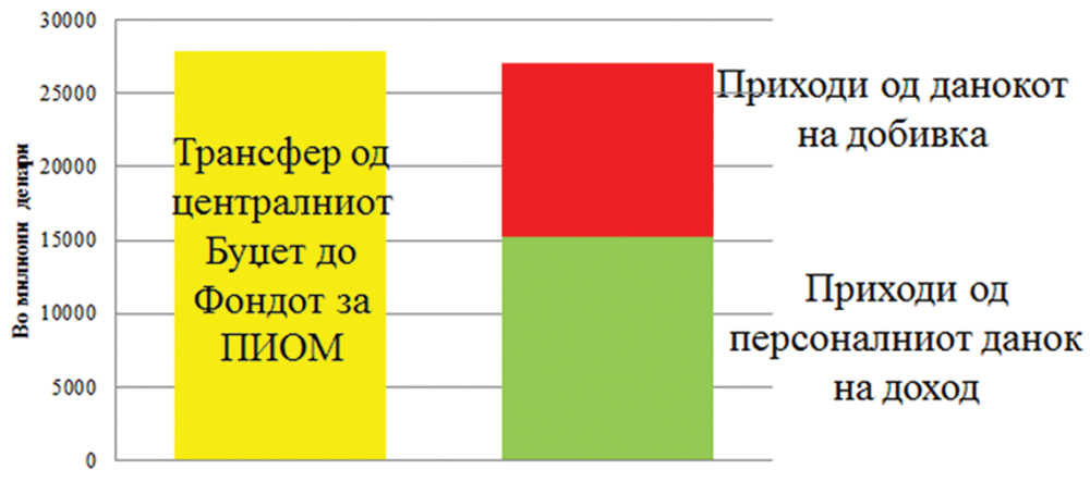 2. Трансферот од Централниот буџет до Фондот за ПИОМ е дури поголем и од збирот на годишните даночни приходи од персонален данок на доход и данок на добивка! Сите приходи по основ на персонален данок на доход и данок на добивка веќе ги замислувам како заминуваат кон пензионерските паричници. Колоквијално би можеле да ги наречеме „пензионерски даноци“.