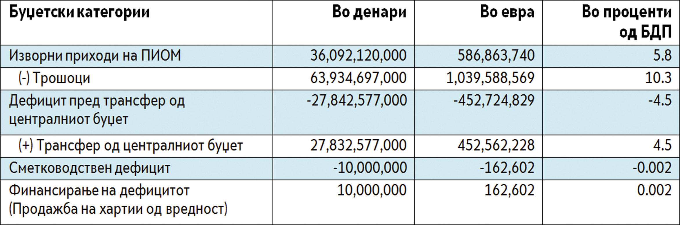 3. Овој трансфер од Централниот буџет до Фондот за ПИОМ е малку над половина (51.09 %) од кумулативниот износ на нето-средствата во приватните пензиски друштва, со состојба на 30.9.2017 година. Годишниот дефицит во ПИОМ е 452,7 милиони евра, а во системот на задолжително капитално финансирано пензиско осигурување досега се собрани 797,6 милиони евра. Кога креаторите на макроекономската политика би се инспирирале да ги национализираат пензиските фондови, тогаш приближно би го покриле дефицитот во ПИОМ во две последователни години. Тоа би била страшна, непопуларна и неразумна одлука.
