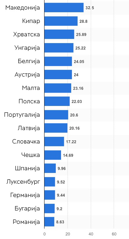 Треба да се има предвид дека и во самата ЕУ постојат огромни разлики во висината на акцизите меѓу земјите членки.