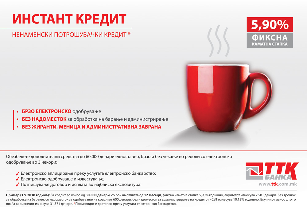 ИНОВАТИВЕН КРЕДИТЕН ПРОИЗВОД НА ТТК БАНКА АД СКОПЈЕ – ИНСТАНТ КРЕДИТ