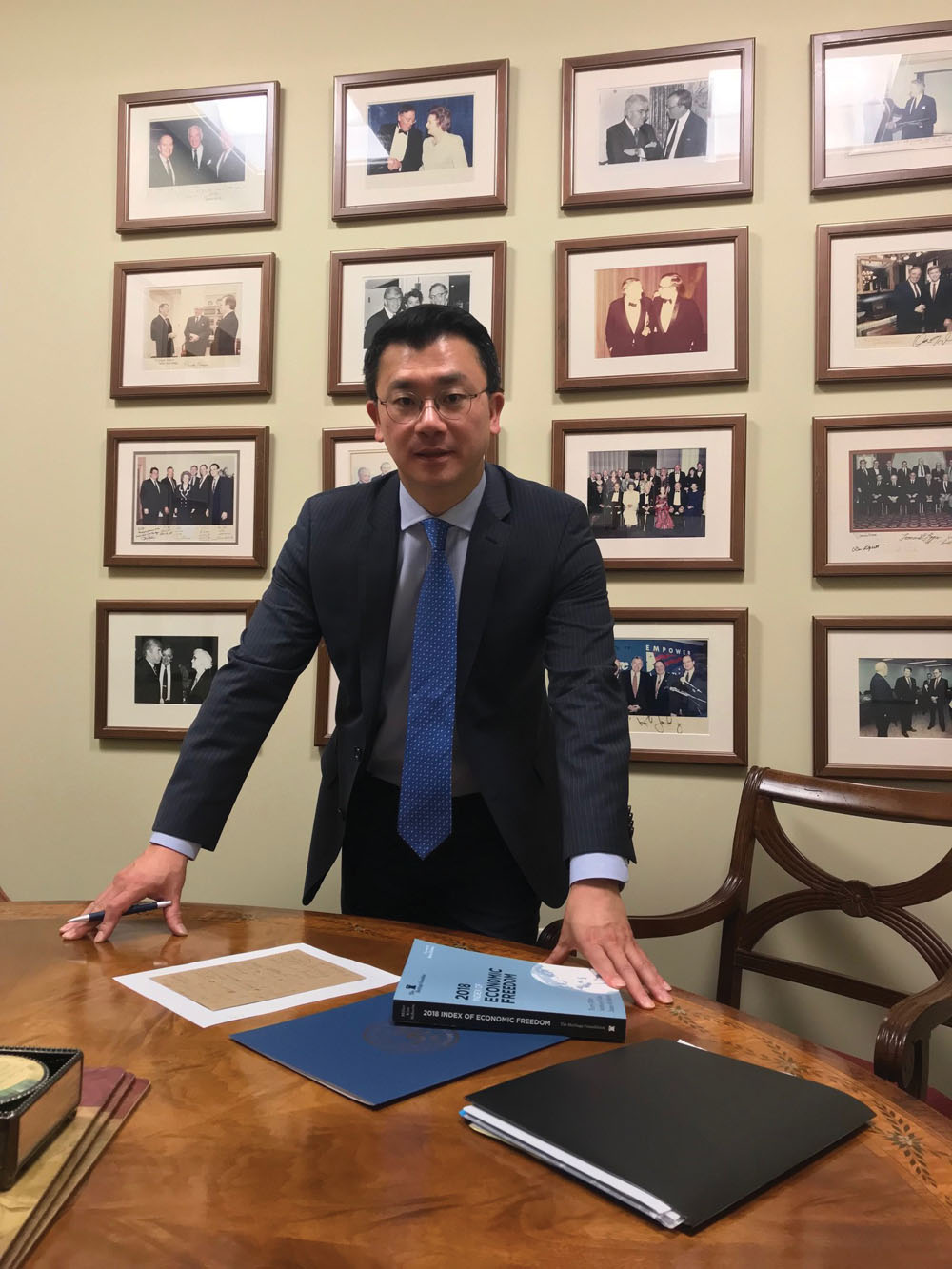 Е. Ким: Херитиџ фондацијата е тинк-тенк, една од најшироко поддржуваните, независни институции што се занимаваат со конзервативни истражувања и едукација. Со седиште во Вашингтон, од своето основање во 1973 година Херитиџ фондацијата е бастион на американското конзервативно движење.