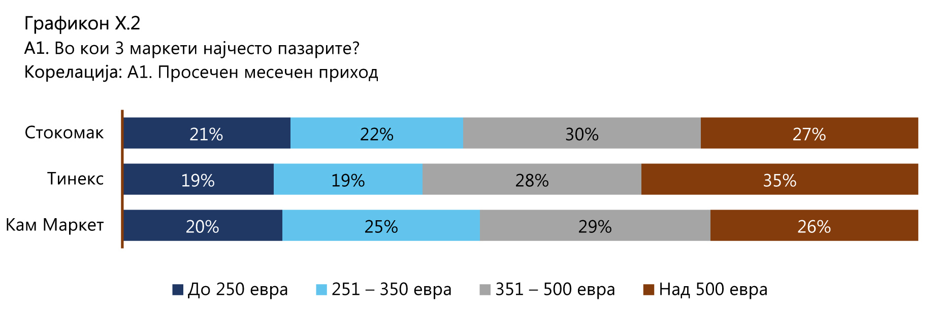 Од структурата на потрошувачите забележливо е дека во Кам Маркет и Стокомак според приходот потрошувачите имаат прилично изедначено учество, додека во Тинекс се зголемува учеството на групите со зголемување и на самиот приход.