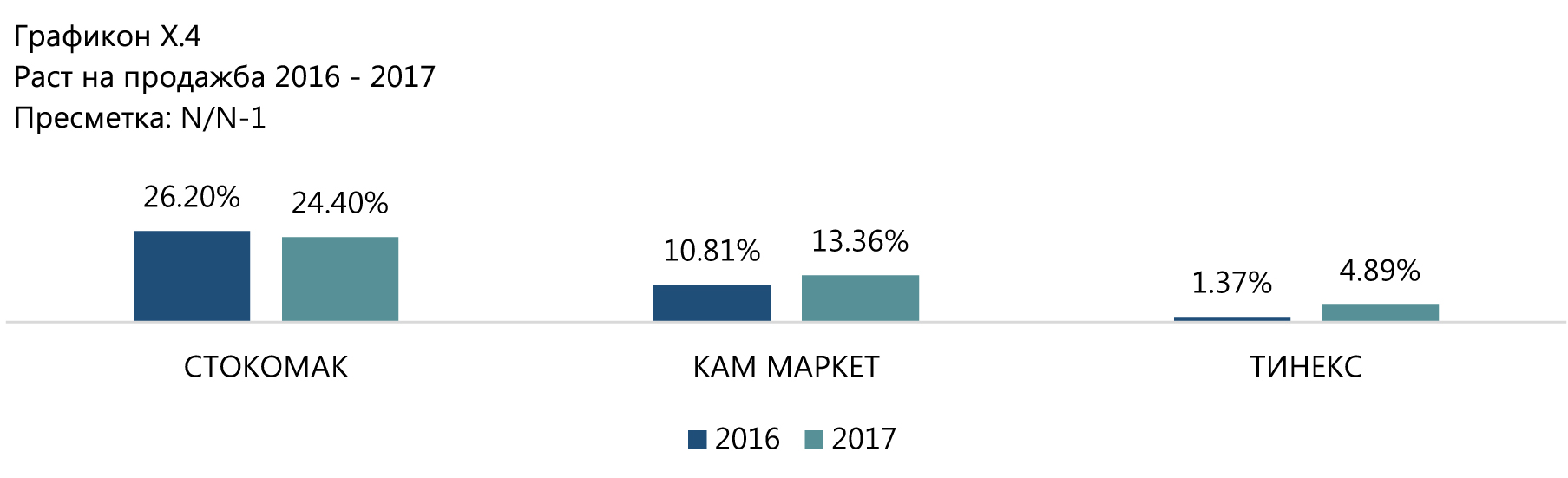Во релативни броеви, највисок е растот во Стокомак кај кој и во двете години има 26% односно 24%, потоа во Кам Маркет 10%/13% и Тинекс со 1.3%/4.8%. Во однос на финансиите, се очекува во тековната 2018-та приходите на Кам Маркет и Стокомак да ја задржат стапката на раст како и во претходните години.