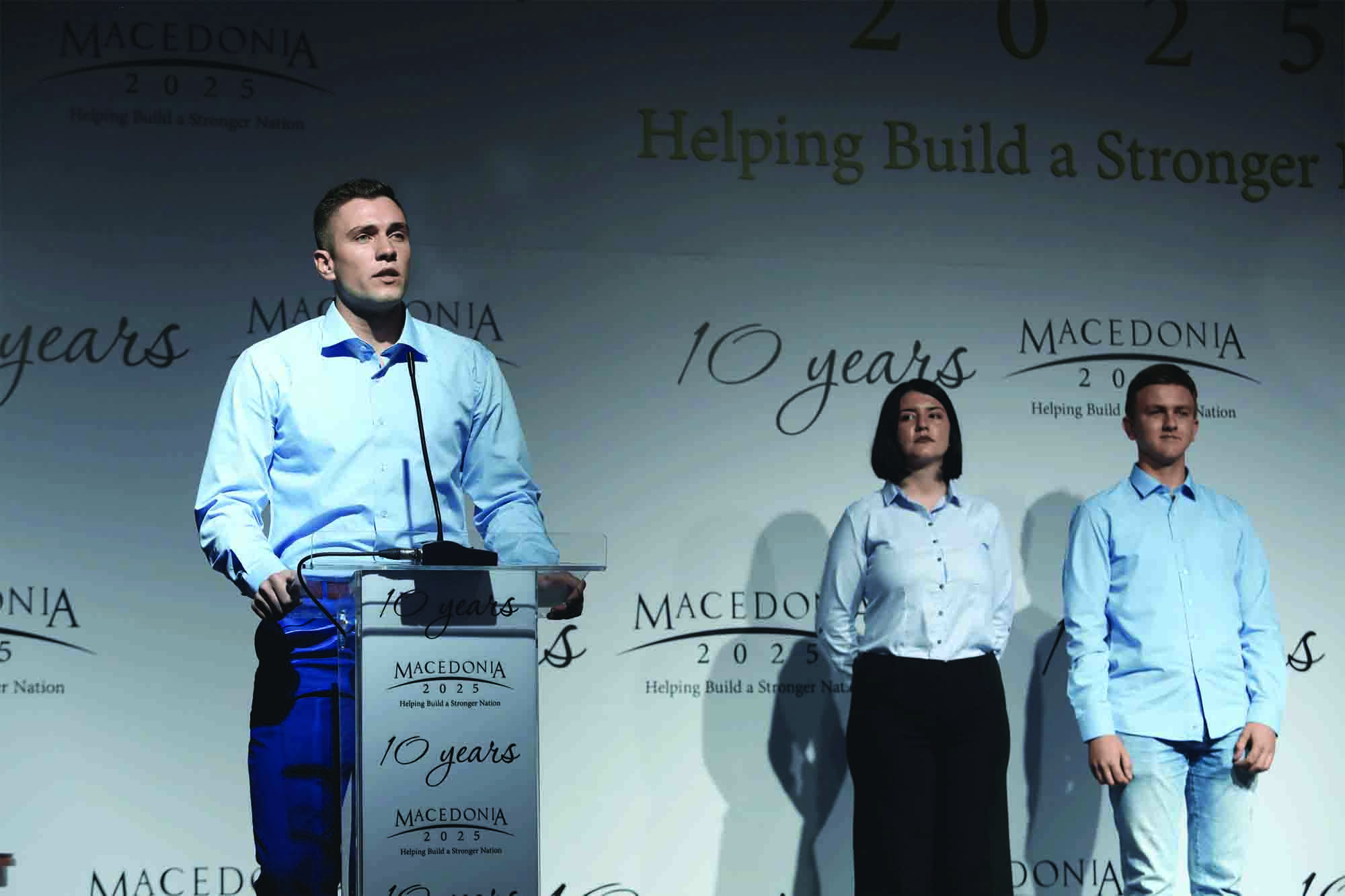 Невладината меѓународна организација Македонија2025 го прослави своето десетгодишно постоење, со организирање на донаторска гала-вечера на 8-ми ноември. Пред публика составена од преку 400 гости, видни претставници на бизнисот, академијата, како и дипломатскиот кор, беа презентирани програмите за развој на лидерски вештини, економски развој, како и поврзување со бизнис дијаспората. Вкупните вложени средства во програмите за лидерски развој се еден милион долари, а средствата вложени за поттикнување на економскиот развој на земјата се три милиони долари.