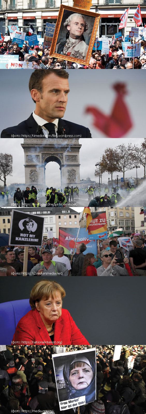 Ако се навратам уште наназад по текстовите оваа година, гледам дека анализирајќи ги и сите останати движења: политичкиот преврат во Италија, цврстината на Орбан во Унгарија, новото царство на Качињски во Полска, разнишувањето на довербата во ЦДУ-ЦСУ и Меркел во Германија итн., практично секаде го следиме трендот на дивергенција на политичките и идеолошките матрици. Поделбата повторно стапува на сцена и во Франција која изгледаше дека го пронајде својот „дијазепам“ во движењето „Ен Марш!“ (Напред!) на Емануел Макрон, чија симпатичност, искреност и упорност дејствуваа отрезнувачки за зачмаеноста на двете големи политички групации. Во моментов на пишување на овој текст улиците на Париз повторно горат, принудувајќи го Макрон на отстапки во врска со фискалните зафаќања на неговата даночна реформа, решение кое сигурно нема да претставува конечна разрешница на длабоката француска политичка криза. Нервозата во Континентална Европа расте и под самиот притисок на европските избори во Мај 2019 година кога овие идеолошки разлики уште повеќе ќе излезат на површина и ќе создадат нови предизвици во срцето на западната цивилизација.