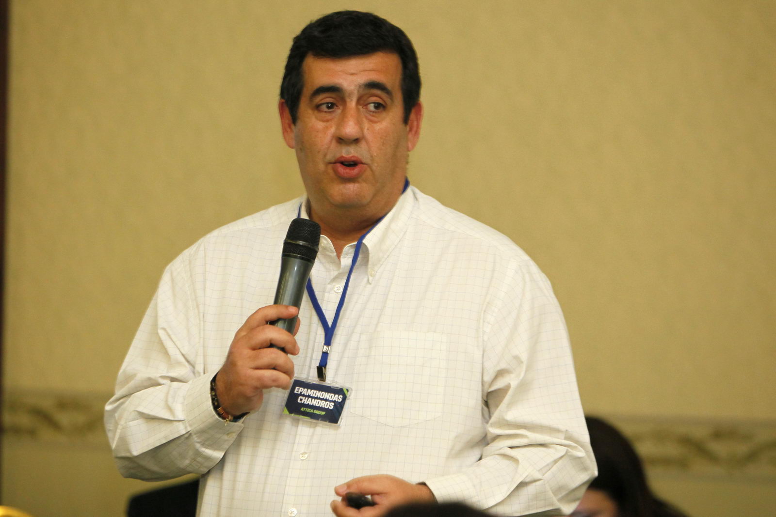 - Г-дин Epaminondas Chandros, O.T. Senior Manager, Attica Group, кој ја предизвика публиката со практична дискусија за поврзаноста помеѓу внатрешната ревизија, сениор менаџментот и Одборот за ревизија, како три “различни светови” кои треба блиску да соработуваат во остварувањето и заштитата на интересите на корпорациите и нивните акционери.