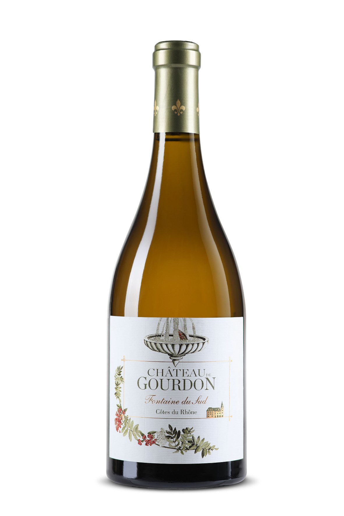 Белото премиум вино Fontaine du Sud е идеално балансирана купажа од сортите: гренаш бел, кирет, русан, марсан и виоње. Се одликува со средно тело и висока ароматика, во која доминираат цитрусни ароми и ноти од суви цветови на мандарина и кајсија. Во вкусот се чувствува влијание на кора од портокал и бела праска. Ваквите карактеристики на ова вино му даваат изразена свежина, што го прават идеален придружник на топлите денови. Се сервира на температура од 10 до 12°C.