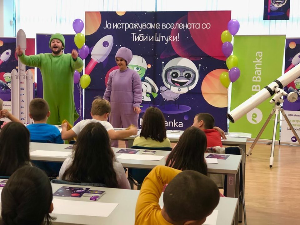 Никогаш не е прерано да започнете со конкретни активности за да ги едуцирате вашите деца за важноста и придобивките од штедењето. Доколку не сте знаеле, ве потсетуваме дека октомври е месецот на штедење, а НЛБ Банка, традиционално по осми пат, го организираше НЛБ Денот наменет за најмалите, со што и официјално го отвори НЛБ Месецот на штедење. По тој повод, денес во НЛБ Галеријата беа поканети дечиња од неколку основни училишта и беше организирана забавна и едукативна програма на тема ,,Ја истражуваме вселената со Тиби и Штуки!“.