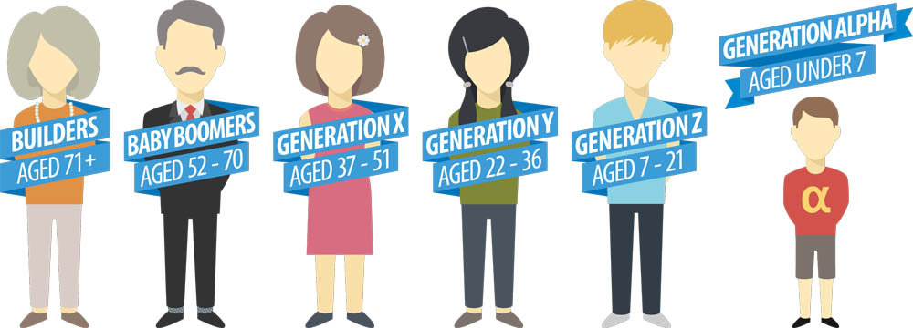 Таканаречените генерациски колективи оформуваат групи на возрасти чии граници најчесто се врзани за настани или феномени кои оставиле длабоко социолошко и психолошко влијание врз развојот на новите генерации. Па така, како дел од генерацијата бејби бумерс се сметаат луѓето кои се родени во првите 15 години од завршетокот на Втората светска војна, време на обнова на земјите, време на оптимизам и општествена внимателност која е наметната од нивните родители кои имаат длабоки и свежи сеќавања од војната. Слично, една од поновите генерации, милениумците, претставуваат луѓе родени околу падот на Берлинскиот ѕид, па сè до отприлика 1995 година, возрасна граница на луѓе за кои може да се каже дека се сеќаваат и го имаат преживеано социјалниот и психолошки шок од терористичкиот напад „11 септември“, а во исто време, во најголем дел се деца на овие првиве – бејби бумерси.