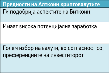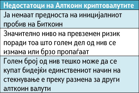 Во продолжение следи сублимиран табеларен приказ од аспект на можности и потенцијални ризици од поседувањето ваков тип криптовалути: