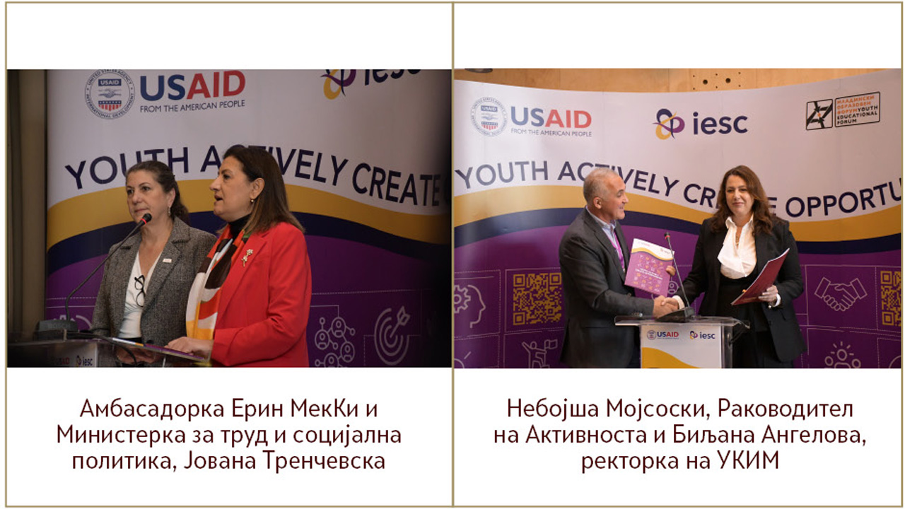 Денес, УСАИД официјално ја започна новата Активност фокусирана на младите чијашто цел е поврзување на младите со можностите коишто им се потребни за да бидат конкурентни во денешната економија. Петгодишната Активност на УСАИД за млади кои активно создаваат можности, којашто е со вредност од 7 милиони долари, има за цел да го зголеми придонесот на младите кон општеството и ќе работи со 10.000 млади лица во земјава на возраст од 16 до 35 години. Активноста има три суштински цели: воспоставување партнерства за привлечни економски можности за младите, јакнење на вештините на младите за успешна кариера и промовирање вредности како одговорност, етика и граѓанско учество.