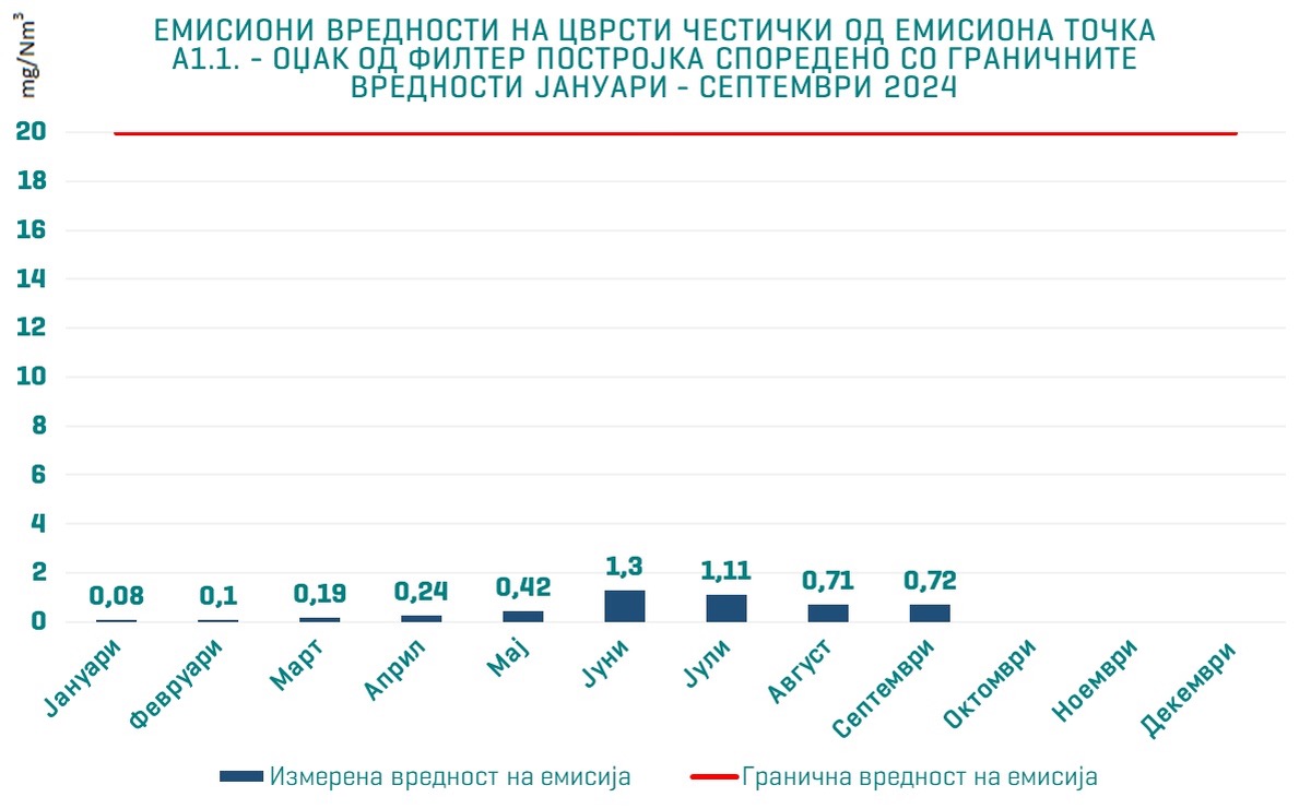 Во прилог на ова соопштение е пресекот на емисионите вредности на цврсти честички од двете мерни точки во периодот од јануари до септември 2024 година.