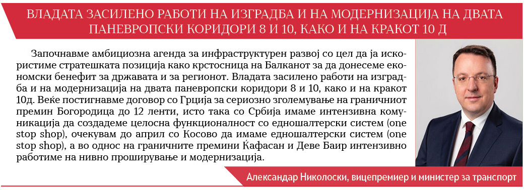 Интегрирањето на копнениот, на поморскиот и на воздушниот сообраќај на Балканот во заедничката европска мрежа, како и инвестициската соработка и поддршката на Унијата за инфраструктурните конкретни проекти се од исклучително значење за економиите од регионот.