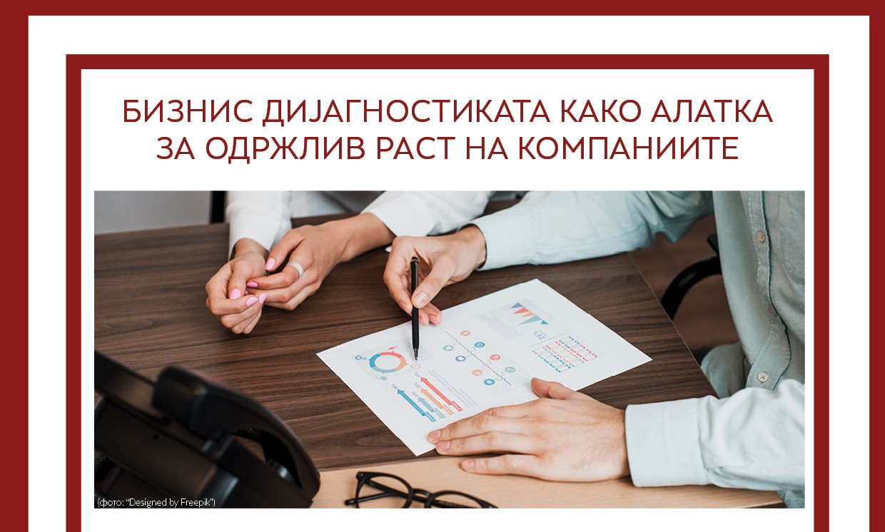И. Аврамска Пашовска: Бизнис дијагностиката е професионална услуга за темелна проценка на финансиските, на организациските и на оперативните параметри на компанијата. Таа овозможува анализа на профитабилност, на ликвидност, на структура на трошоци и на капитал, на ризици, на пазар и на конкуренција, како и анализа на продуктивноста. Резултатот е тродимензионална слика за реалната состојба, за скриените слабости и за можностите за усовршување, реструктурирање или раст.