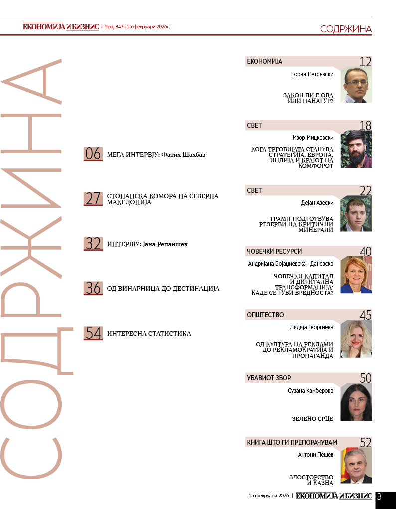 Економија и бизнис | печатено издание | 15 февруари 2026г.