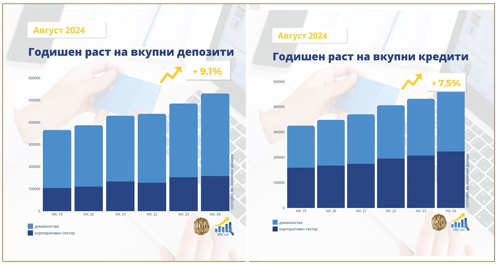 Годишен раст од 9,1% на вкупните депозити и од 7,5% на вкупната кредитна поддршка
