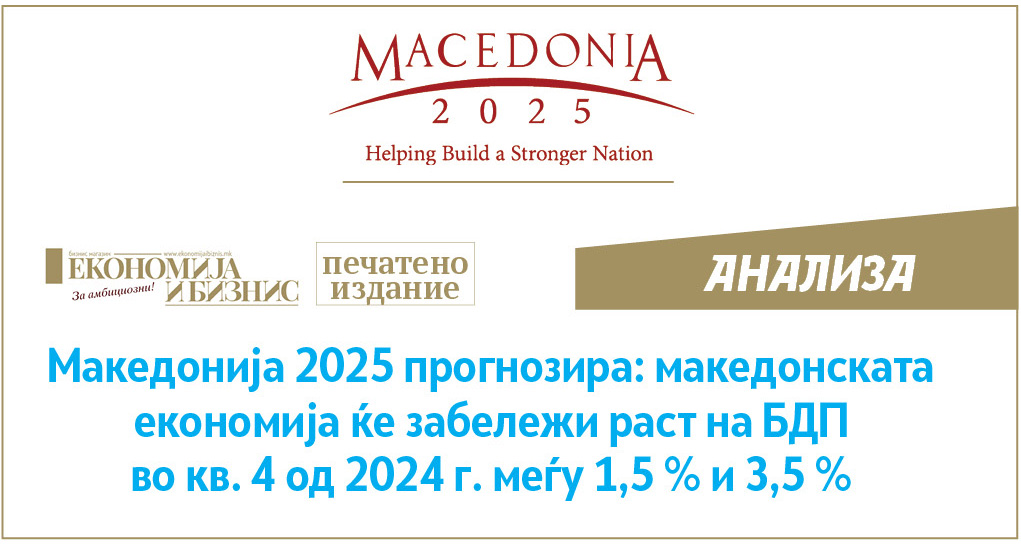 Македонија 2025 прогнозира: македонската економија ќе забележи раст на бруто-домашниот производ во кв. 4 од 2024 г. меѓу 1,5 % и 3,5 %