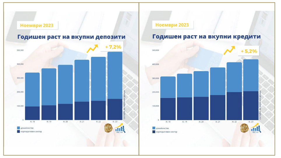 НБ: Годишен раст од 7,2% на вкупните депозити и од 5,2% на вкупната кредитна поддршка во ноември