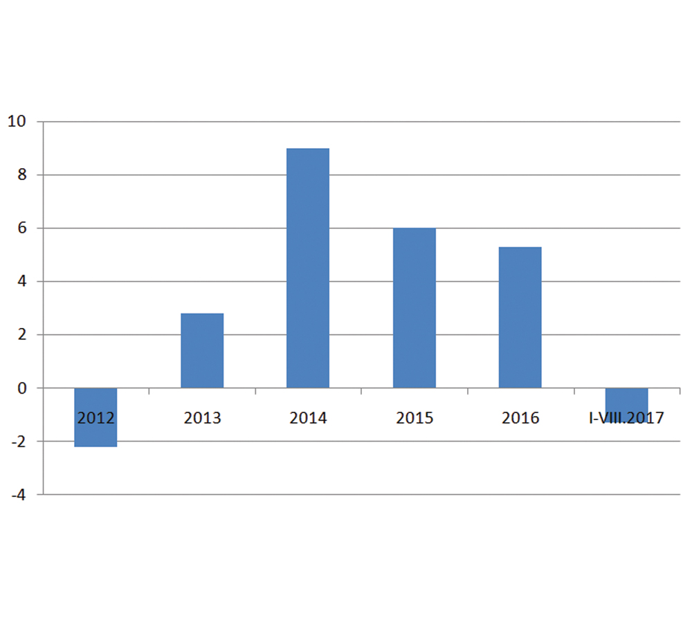 Преработувачката индустрија во Република Македонија има најголем удел во вкупното индустриско производство и тој со текот на времето се зголемува, па од 75,7% во 2012 година достигна 82,9% во 2017 година. Како што може да се види од графиконот, за првпат по 2012 година, во првите осум месеци од 2017...