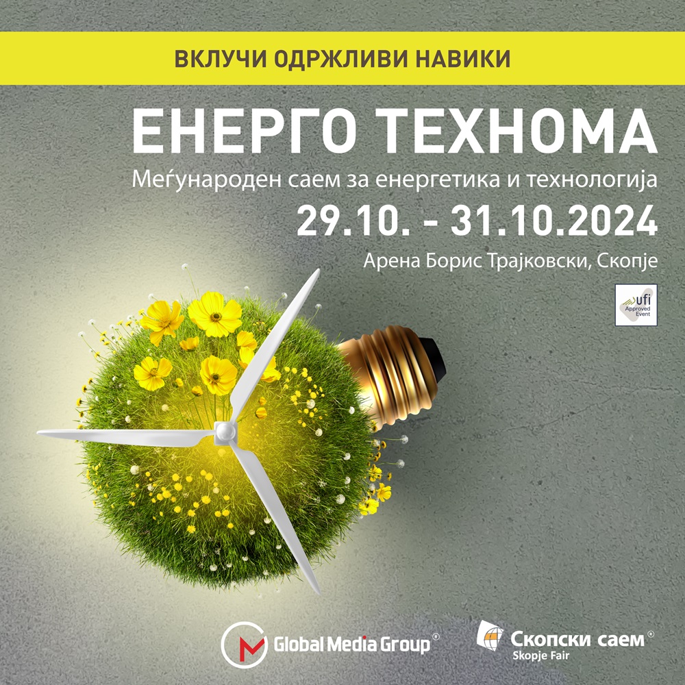 Енерго Технома 2024 – Меѓународен саем на енергетика, електротехника, ладење и греење, соларни системи, пумпни системи, технологија и технолошки системи, ќе се одржи во Арената „Борис Трајковски“ од 29 до 31 октомври. Станува збор за саем кој ќе ги претстави сите иновативни решениј...