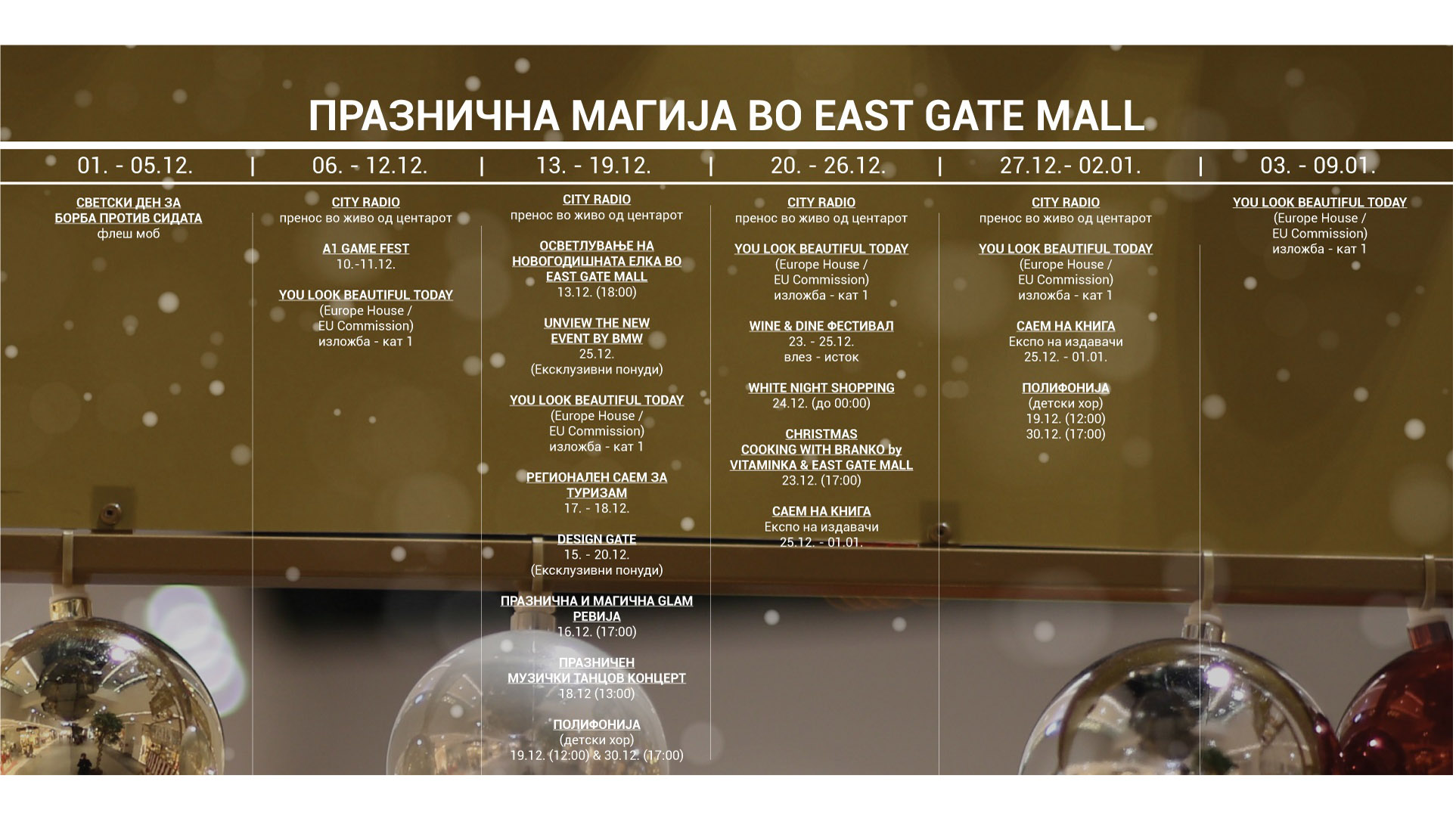 Финалето ќе се одржи на 10ти и 11ти декември во East Gate Mall, каде најд...