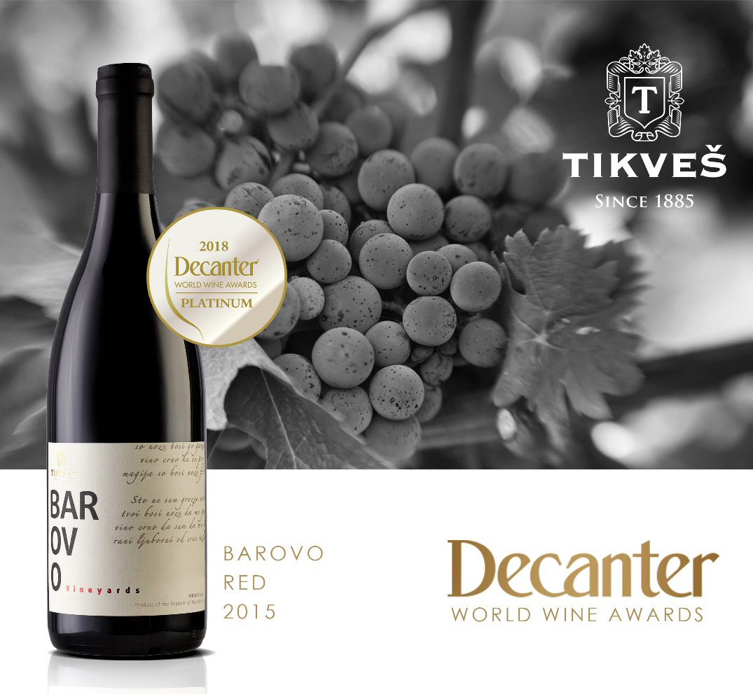 На еден од најзначајните специјализирани вински натпревари во Европа, црвеното вино „Барово 2015“ освои највисока награда. Според истакнатиот вински критичар, автор и член на жирито на престижниот меѓународен вински натпревар Декантер (Decanter) - Дарел Џозеф, платинестиот медал зацрвено...
