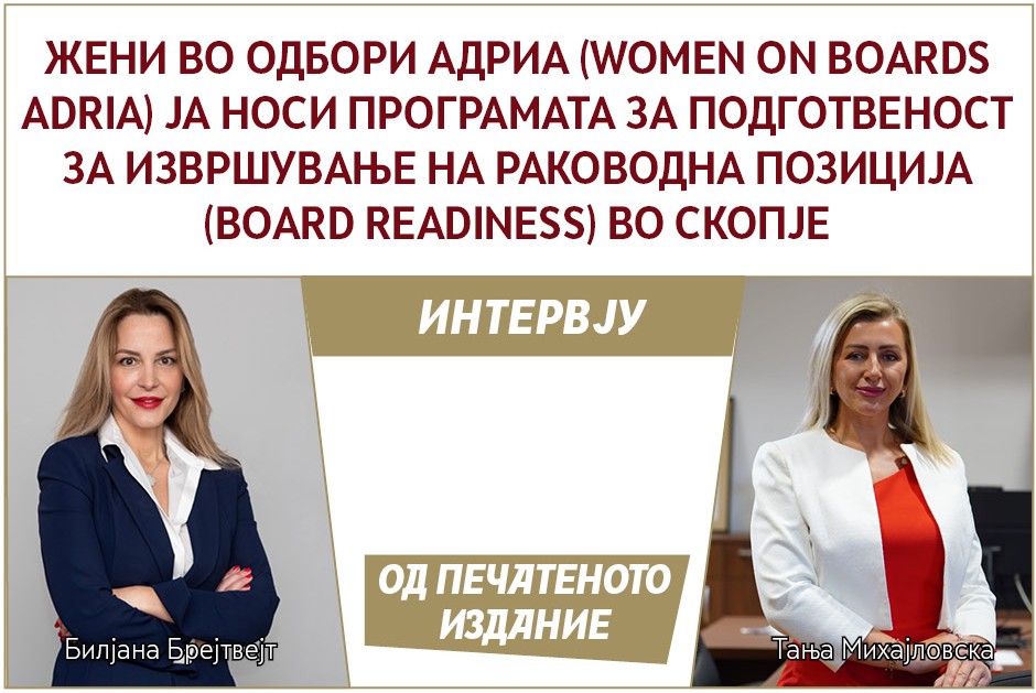Жени во одбори адриа (Women on Boards Adria) ја носи Програмата за подготвеност за извршување на раководна позиција (Board Readiness) во Скопје