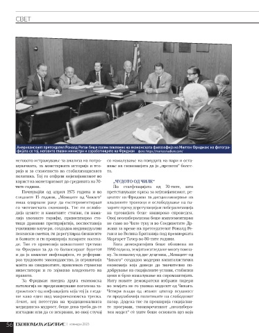 Американскиот претседател Роналд Реган беше голем поклоник на економската филозофија на Милтон Фридман: на фотогра-
