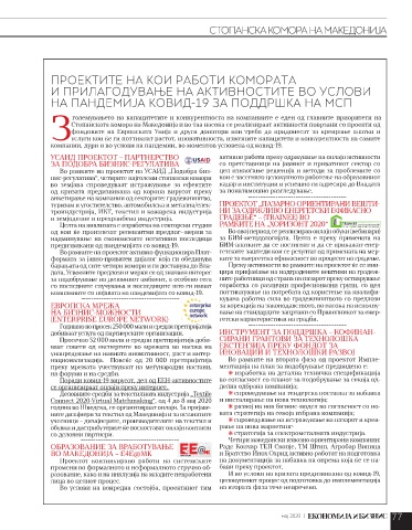 Стопанската комора на Македонија и во таа насока се реализираат активности поврзани со проекти од