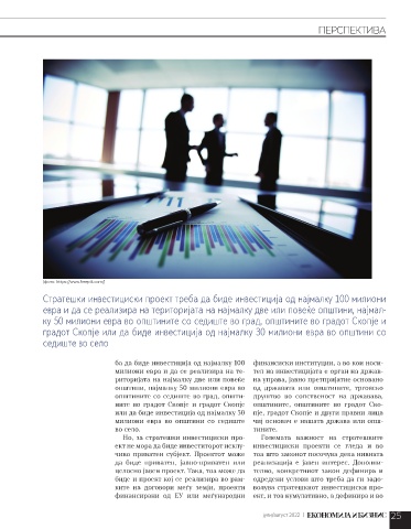 Стратешки инвестициски проект треба да биде инвестиција од најмалку 100 милиони