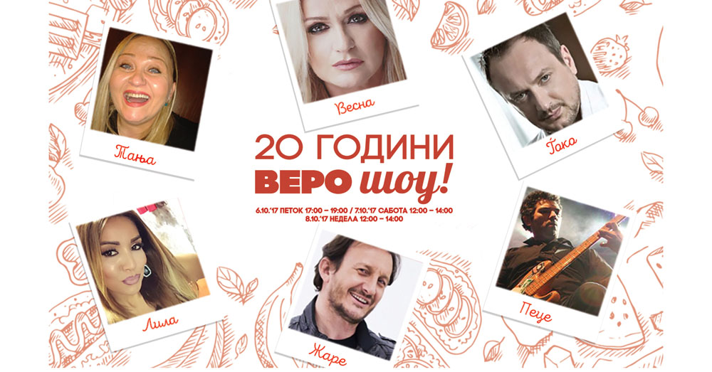 Познати личности од земјава ќе ги демонстрираат своите кулинарски вештини и ќе се натпреваруваат во готвење во големото тридневно Веро шоу кое ќе се одржува во петок, сабота и недела во Веро центар. Со спектакуларното шоу за готвење, Веро ја заокружува едномесечната голема прослава на 20-годишниот јубилеј, период во кој компанијата ги награди своите лојални потрошувачи со специјални најконкурентни цени на производи, примамливи акции и бројни изненадувања.