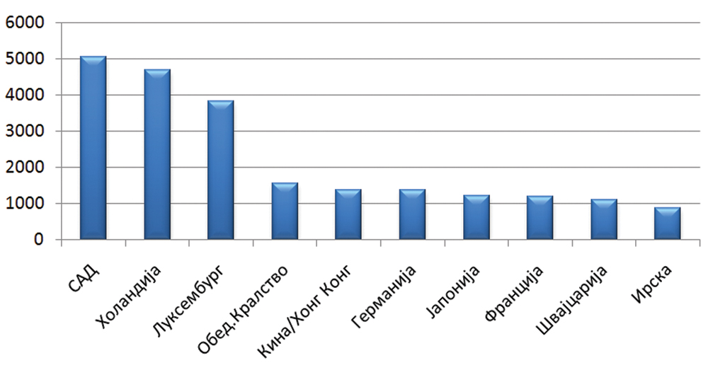 Топ 10 земји приматели на странски директни инвестиции (во милијарди УСД, 2015 год.)
