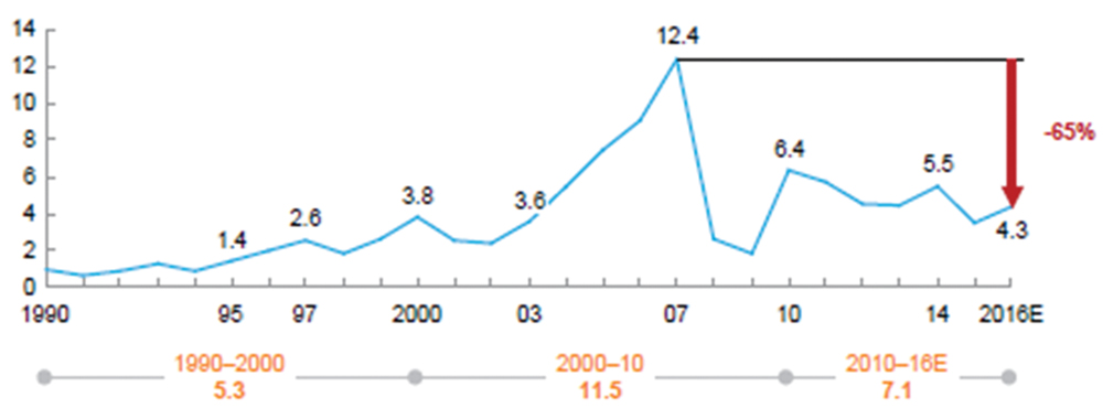 Во 2007 година, глобалните текови на капиталот изнесуваа 12,4 трилиони САД долари. Тоа беше досега највисокото регистрирано ниво на меѓународни текови на капиталот. Сепак светската финансиска криза и последователната Голема рецесија покажаа дека финансиската глобализација зачекорила предалеку. Ова особено се однесува на банкарската глобализација, односно незапаметениот пораст на банкарските кредитни текови во меѓународни рамки. Следуваше колапс на глобалните текови на капиталот, краткотрајно заживување и стабилизација на проценети 4,3 трилиони САД долари во 2016 година. Но, сега тие се намалени за дури 65 % во однос на кризната 2007 година. Дали живееме во ера на финансиска деглобализација или пак едноставно меѓународните финансиски текови се стабилизираа на нормално ниво? Ова ниво преовладуваше на почетокот на новиот милениум и многу веројатно тоа е новата нормала во меѓународните финансии. Новата нормала се должи на значајното банкарско раздолжување (deleveraging) во глобални рамки и во основа се сведува на банкарска деглобализација.