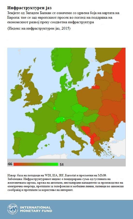 ММФ ја идентификува основната јавна инфраструктура што недостасува во регионот како значајна пречка за повисок економски раст. Подобри транспортни, енергетски и телекомуникациски мрежи ќе им помогнат на земјите од Западен Балкан да ја зголемат продуктивноста, да се интегрираат подлабоко во крвотокот на глобалната трговија и да ја подобрат атрактивноста на регионот за странските инвестиции. Анализата покажува дека регионално координиран притисок врз јавната инфраструктура, заедно со подобро управување на конкретните проекти, би можело значително да го зголеми приходот по глава на жител. Долгорочната добивка на реалниот БДП по човек би можела да достигне и до 3-4 процентни поени.