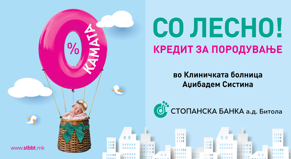 Кредитот за породување, како дел од Медиплус кампањата, е моментално еден од најактуелните продукти на Банката. Овој безкаматен производ може да обезбеди средства до 4.000 евра и е достапен за сите граѓани во редовен работен однос. Бидејќи каматата изнесува 0%, единствениот трошок кој ќе го имаат клиентите е трошокот за аплицирање е 200 денари, како и провизија за одобрен кредит, која изнесува 0,5% од подигнатиот износ. Кредитот за породување е достапен со идентични услови и за оние кои својата плата не ја примаат преку Стопанска банка а.д. Битола. Едноставно, после аплицирањето, парите се префрлаат на трансакциска сметка на корисникот од каде директно се префрлаат на сметка на Клиничка болница „Аџибадем Систина“ согласно про-фактурата на услугата.
