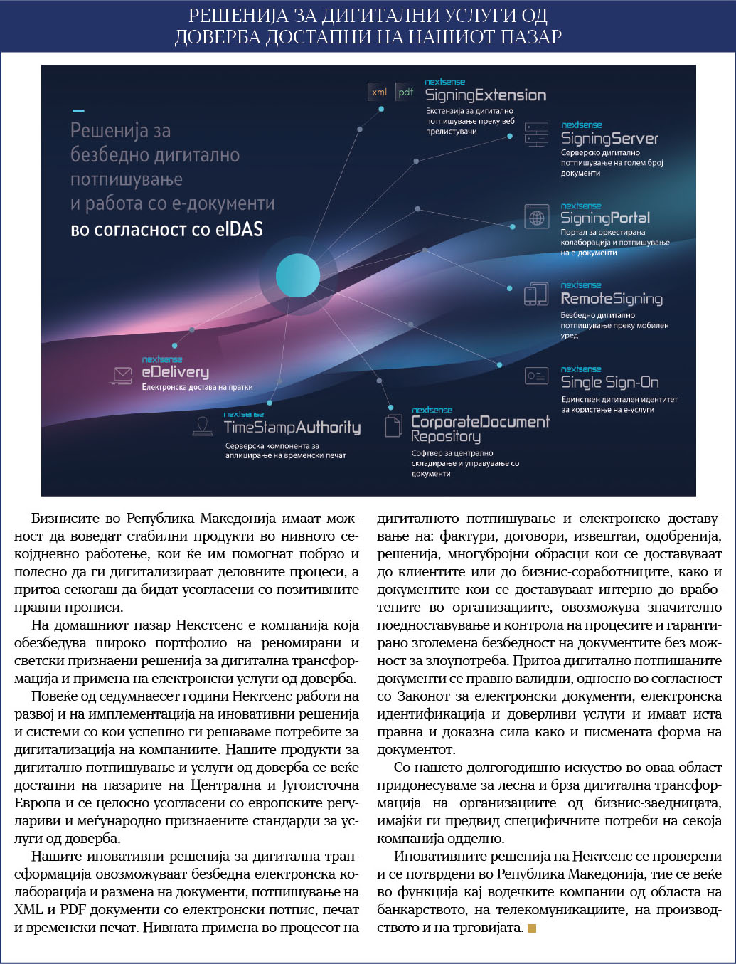 За да се решат на одлучувачкиот чекор – автоматизација и дигитализација на бизнис-процесите, односно замена на хартиено работење со електронско, организациите барат цврста гаранција дека електронските документи, вклучително и електронскиот потпис и печат, ќе имаат иста правна валидност како и хартиените. Второ значајно прашање кое се отвора е меѓународното признавање на дигиталните документи и нивната прекугранична размена. Единствениот излез за сите стејкхолдери – бизнисот, државата и ИКТ-провајдерите е обезбедување услуги врз основа на европската регулатива и највисоките европски стандарди.