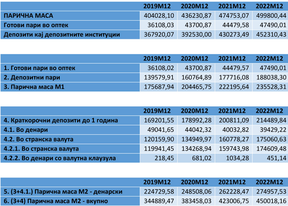 Анализа на паричната маса и нејзините компоненти 2019-2022 - прв дел -