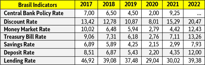 За разлика од Аргентина, ситуацијата во Бразил може да се окарактеризира како “понормална”. Евидентно е и тука спроведување на рестриктивна монетарна политика со нагорни движења кај каматната стапка на централната банка, а со тоа предизвикувајќи зголемени нивоа на дисконтната каматна стапка до ниво од над 20%, во 2022 година. Позначително, скоро тројно зголемување забележано е кај депозитните каматни стапки, кои минатата година биле 12%, додека сеуште екстремно високи каматни стапки се одржуваат кај кредитите. Имено, во последните 6 години најниската каматна стапка изнесувала 29%, додека најнеповолна година за корисниците на кредити била 2017 година, кога каматните стапки се одржувале на ниво од околу 45%.