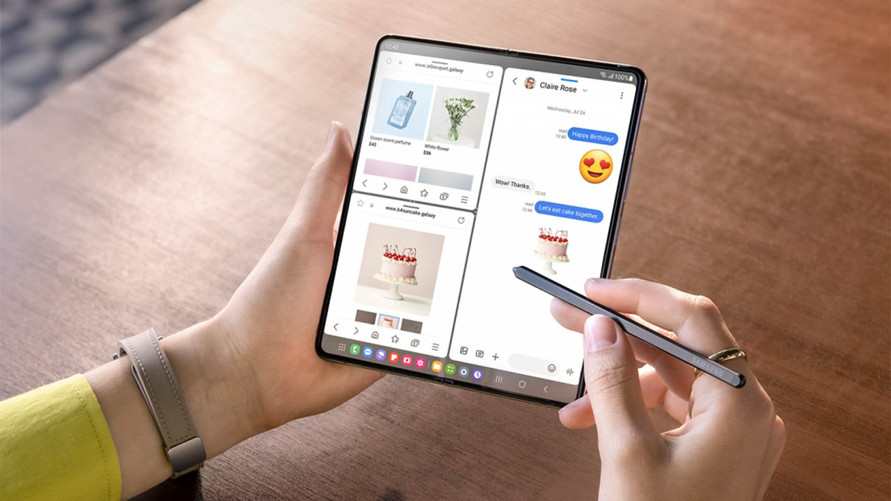 Новиот телефон на преклоп Galaxy Z Fold5 отвора нови начини за максимизирање на продуктивноста и нуди одлични можности да ги извршувате вашите секојдневни професионални обврски во секое време и било каде да се наоѓате. Се прашувате како? Одговорот е едноставен: Главниот екран на Galaxy Z Fold5 кога е отворен, во целост може да го замени вашиот тaблет, па дури и компјутерот. Токму тоа е идејата на Samsung, да создадат уште подобар телефон на преклоп со фокус на значајни карактеристики како продуктивност и мултитаскинг во секое време, без кои во денешниот динамичен свет на бизнисот не се може.