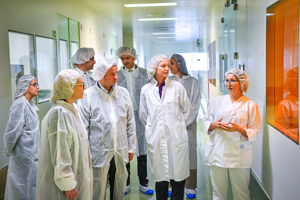 Членовите на делегацијата, предводени од амбасадорката Аксинте, при обиколката на производствените капацитети од сегментот фармација, имаа можност непосредно да се запознаат со високото ниво на подготвеност и на стручност на човечкиот кадар кој управува со процесите, како и со најсовремената опрема и со модерните услови за работа на Институтот за истражување и развој на АЛКАЛОИД.