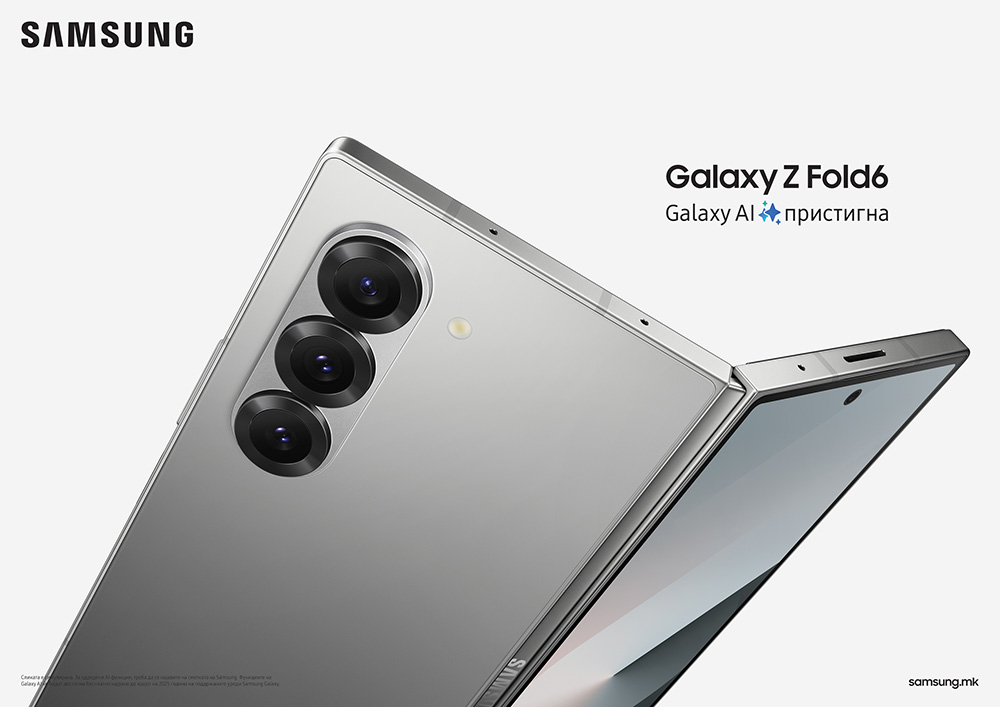 Најновиот фолд телефон на Samsung, Galaxy Z Fold6 кој неодамна заедно со помалиот Galaxy Z Flip6 беа премиерно претставени на корисниците продолжувајќи ја револуцијата кај телефоните на преклоп, е уред кој е првенствено наменет за достигнување на највисоко ниво на продуктивност. Кога ќе го отворите, добивате Dynamic AMOLED екран од 7,6 инчи, фантастичен за работа, креативност и забава каде и да се наоѓате. Со ова на ум, како и со бројните харверски и софтверски подобрувања и можности за интегрирана вештачка интелигенција, бидете сигурни дека добивате можност за уникатно искуство за уживање во голем екран, без разлика дали го користите за професионалните обврски или пак за забава.